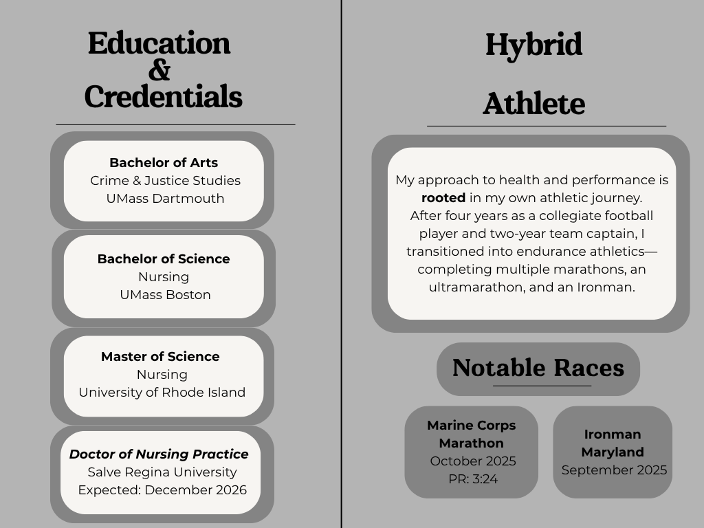 Over time, that evolved into a deeper passion for health, performance, and helping others do the same - take control, raise their standards, and build a life they’re proud of.